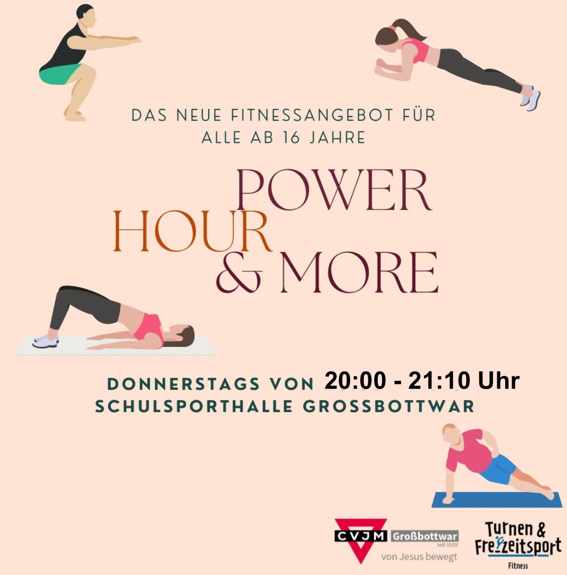 Ab dem 15.01.2026 startet wieder das Sportangebot Power Hour & More für Euch! Das ist eine Kooperation mit dem CVJM und dem TV Großbottwar Abt. Turnen & Freizeitsport.